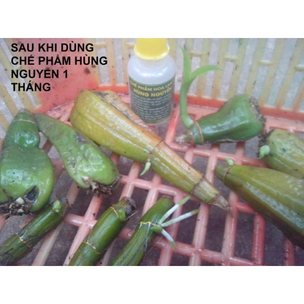 - Với cây tách: Sau khi tách, vệ sinh và sát trùng vết cắt. Ngâm toàn bộ thân-lá-rễ vào nước đã pha chế phẩm tỷ lệ 1 ml/1 lít nước khoảng 30p, sau đó ghép hoặc trồng vào giá thể mới. Cuối cùng, nhúng lại cả giá thể ngập rễ vào nước pha chế phẩm khoảng 10 phút rồi treo lên giàn. Thực hiện tiếp quy trình phun chế phẩm 3-5 ngày một lần xen kẽ với các dưỡng chất khác theo chu kỳ phát triển của cây. Cây sẽ ra rễ nhanh nảy mầm mới nhanh và khỏe.