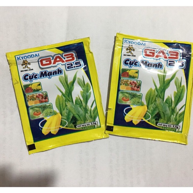 1 gói GA3 5G pha cho 1 bình 16 lít phun ướt đều thân lá của cây! phun lại sau 3-5 ngày!