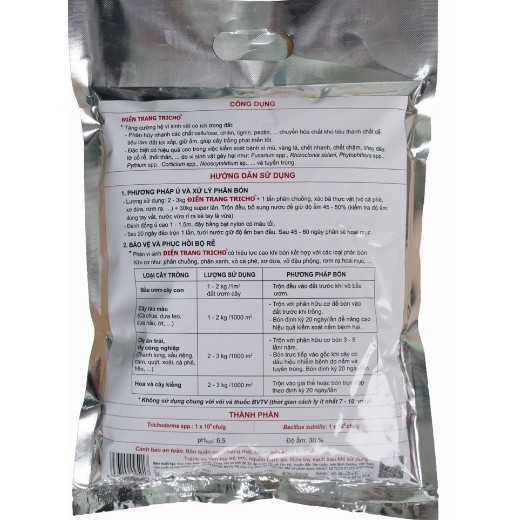 + Sử dụng riêng hoặc phối hợp với phân hữu cơ để bón gốc, liều dùng: 1-2 kg/1000 m2 (hoặc 0,5 kg Điền Trang - Tricho/1000 m2).