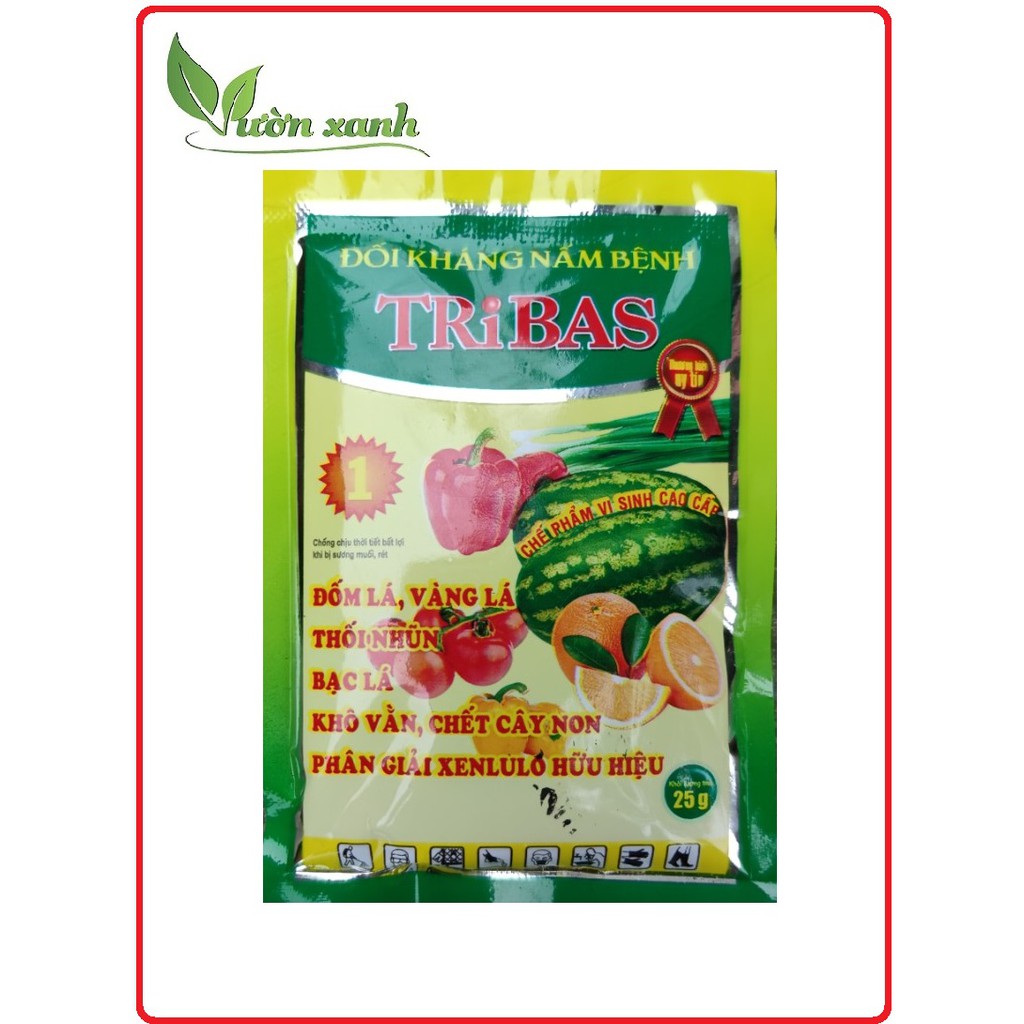 Nhà cửa & Đời sống > Làm vườn > Phân bón || Chế phẩm nấm đối kháng Tribas 25gr giúp ngăn ngừa các hiện tượng thối rễ, vàng lá, chết cây conCòn hàng