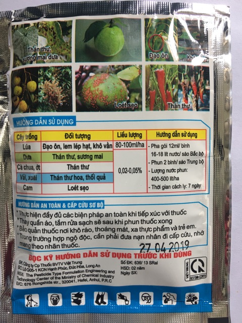 Là thuốc trừ nấm bệnh với 2 hoạt chất có tác dụng nội hấp nên hiệu quả cao và hiệu lực kéo dài. Thuốc được đăng ký đặc trị bệnh lem lép hạt, đạo ôn trên lúa, và thán thư trên cây xoài, ớt