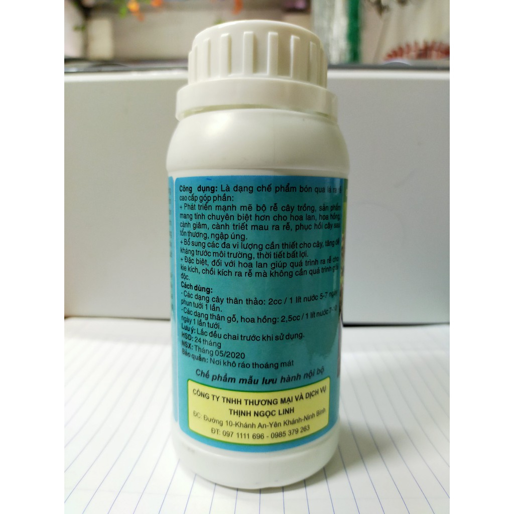 Chế phẩm Ngọc Linh siêu ra rễ A9VIP*Mô tả: Chế phẩm Ngọc Linh siêu ra rễ A9VIP với hiệu quả ra rễ xuất sắc chuyên dùng cho lan, có công dụng kích thích sự phát triển bộ rễ của cây lan trưởng thành, thúc đấy nhanh quá trình ra rễ của cây ươm, kích kie sớm ra rễ, cứng cây và đầy đủ dinh dưỡng. Bên cạnh đó, Chế phẩm Ngọc Linh còn bỏ sung các khoáng đa vi lượng cho cây, tăng sức đề kháng cho cây trước những bất lợi của điều kiện thời tiết, giúp phục hồi nhanh sau khi gặp phải những tổn thương.