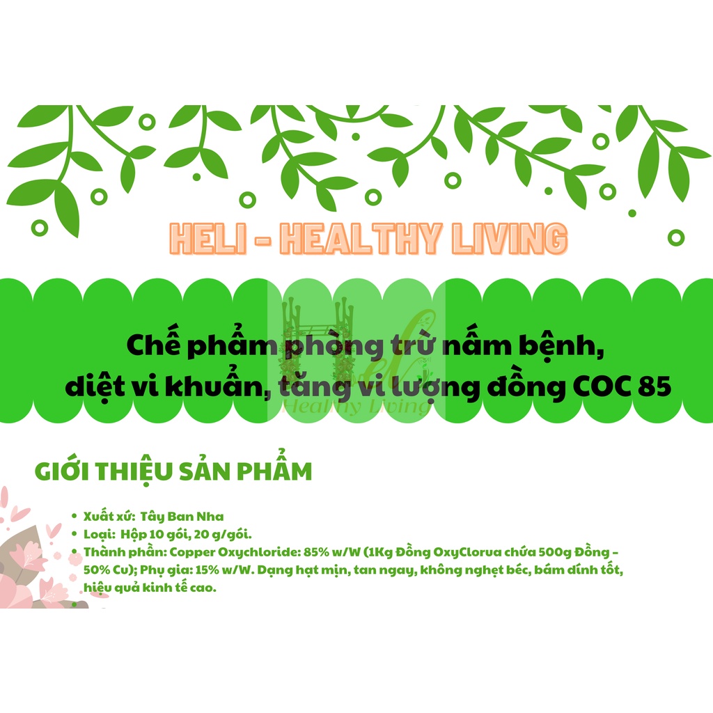 Chế phẩm phòng trừ nấm bệnh, diệt vi khuẩn, tăng vi lượng đồng COC 85 / gói 20 gr