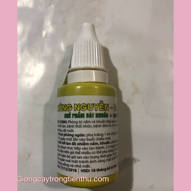 Đối vơi nấm trắng trên giá thể có thể pha 1ml với 1 lít nước và ngâm toàn bộ giò lan vào dung dịch từ 1-2 giờ để diệt nấm hiệu quả hơn.Nấm chuyển từ màu trắng sang màu nâu đỏ và tự phân hủy thành chất dinh dưỡng cho lan