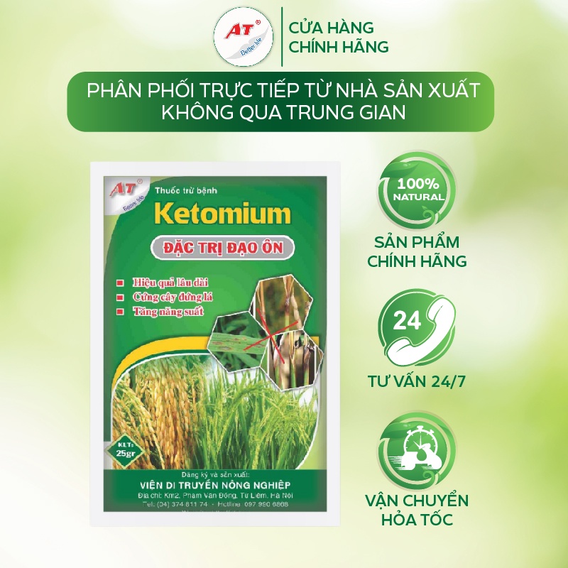 Chế phẩm sinh học AT Phòng trừ đạo ôn bệnh khô cổ bông, tăng sức đề kháng – Ketomium Đạo ôn 25gPhòng trừ đạo ôn, bệnh khô cổ bông, tăng sức đề kháng,...