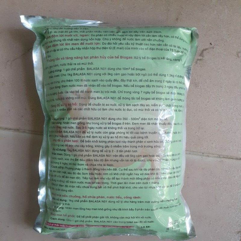 Chế phẩm sinh học đặc biệt, đệm lót chuồng trại Balasa N01 gói 1kg
