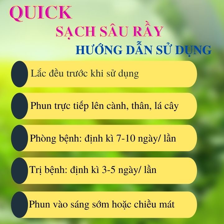 - Sản phẩm Quick – Sạch Sâu Rầy: dùng phun trực tiếp lên thân, lá cành.