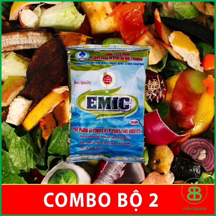 - Chế phẩm EM ( emic) xử lý rác thải làm phân bón hữu cơ: Hòa 2 gói Chế phẩm EM ( mỗi gói chế phẩm emic đóng gói 200gr) vào nước sạch, tưới đều cho 1 tấn nguyên liệu rác thải hữu cơ, tưới thêm nước để rác thải đạt độ ẩm 55 – 60%. Đánh đống ủ và dùng bạt che phủ. Cứ 7 – 10 ngày đảo trộn 1 lần. Thời gian ủ 25 – 30 ngày!