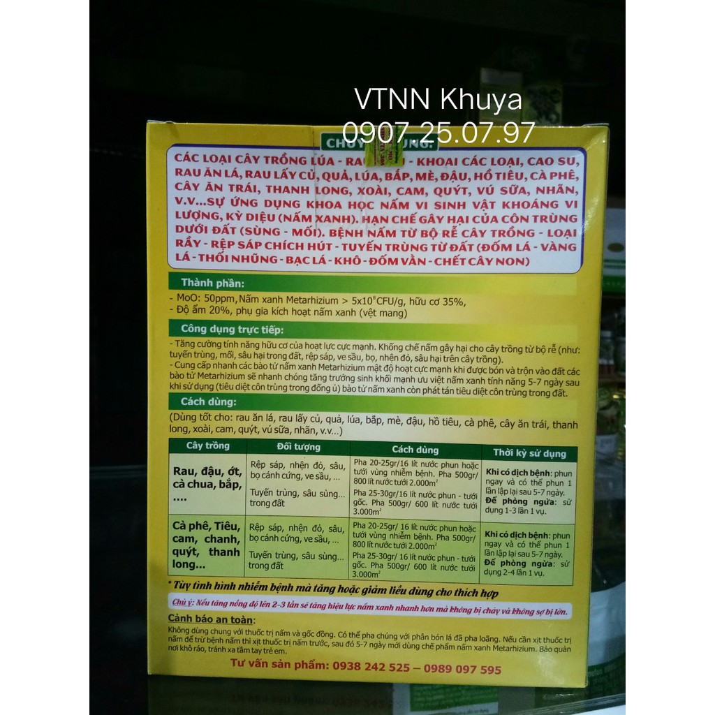 Thành phần: Nấm xanh Metarhizium Anisopliae: Bacillus sp: 1.000 cf/g