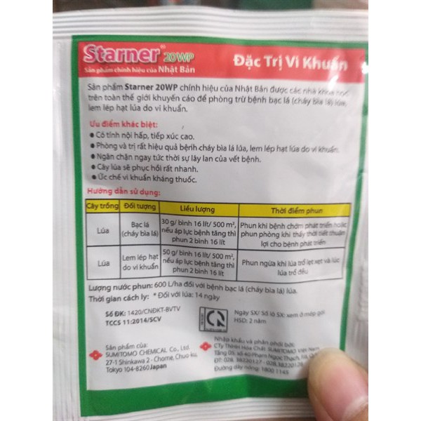 Nhà cửa & Đời sống > Làm vườn > Khác || Chế phẩm STARNER 20WP đặc trị thúi nhũn hàng Nhật Bản gói 10gCòn hàng
