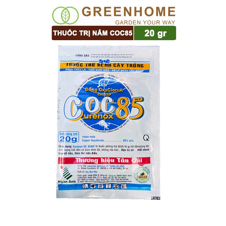 Nhà cửa & Đời sống > Làm vườn > Hạt giống & chất hỗ trợ trồng cây || Chế phẩm trị nấm Coc85 WP, gói 20g ,trừ thán thư, cháy lá, vàng lá, đốm lá cho hoa Hồng, Kiểng lá |GreenhomeCòn hàng