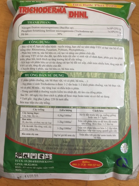 Gói 1kgTricoderma được dùng bón trưc tiếp hoặc pha với nước để . Tricoderma được dùng để ủ phân chuồng, phân xanh, bánh dầu, đậu nành, xác bả thực vật, phụ phẩm, phế phẩm nông nghiệp.