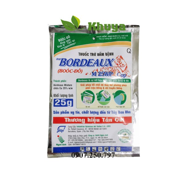 * Thành phần: Bordeaux Mixture:chứa Cu (Đồng) 25% w/w