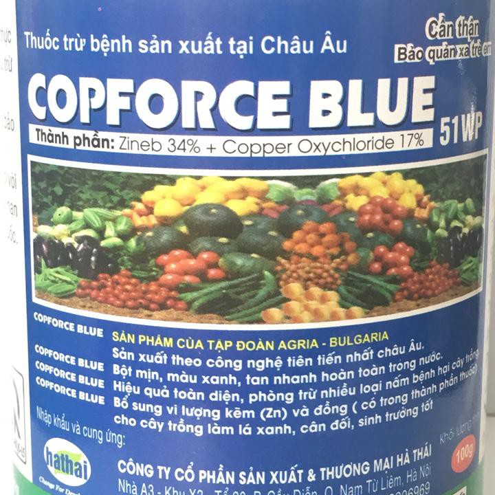 Chế phẩm trừ nấm bệnh COPFORCE BLUE 51WP hũ 100gThành phần: Zineb 34%; Copper Oxychloride 17%