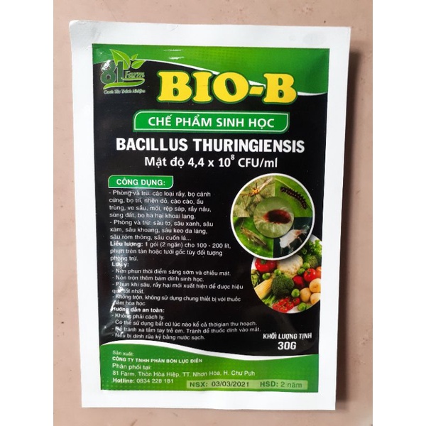 Giới thiệu CHẾ PHẨM TRỪ SÂU SINH HỌC BIO-B GÓI 30GR Nhãn xanh