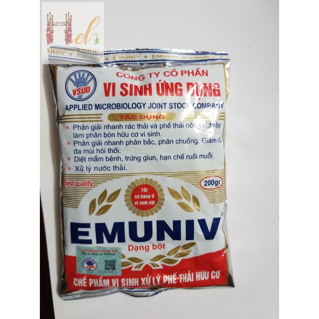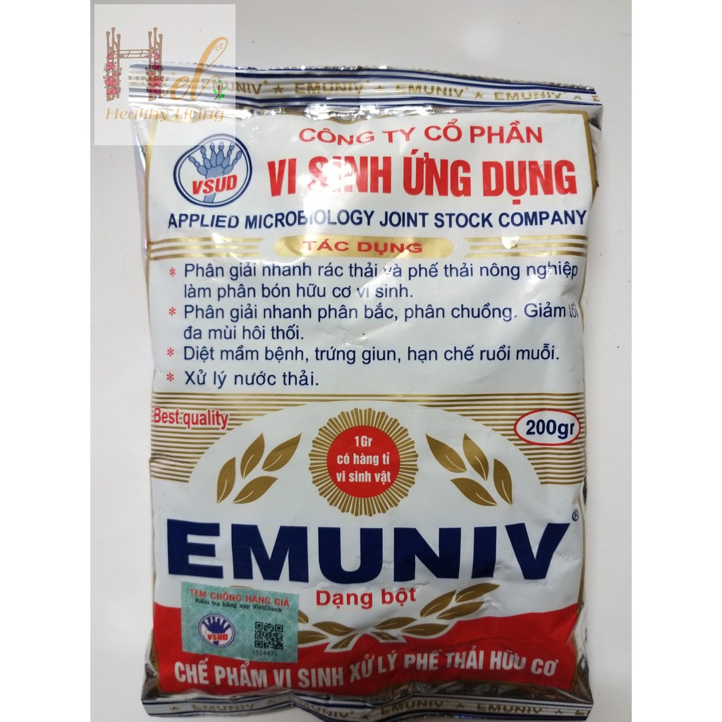 Chế phẩm sinh học EM (Emuniv ) là hỗn hợp vi sinh vật hữu ích có khả năng phân giải mạnh xenluloz, tinh bột protein, lipit, pectin. EM Có khả năng sinh chất kích thích sinh trưởng thực vật, sinh chất kháng sinh, chuyển lân khó tiêu thành dễ tiêu và xử lý nước thải…EMUNIV là chế phẩm trung tính, an toàn không độc hại với người gia súc và môi trường. EM xử lý phân gia súc gia cầm, rác thải, phế thải nông nghiệp làm phân bón hữu cơ và xử lý ô nhiễm môi trường.