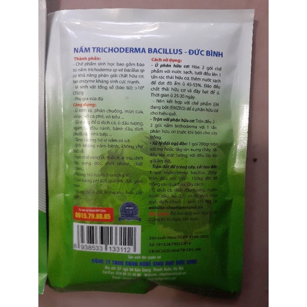 Giới thiệu Chế phẩm vi sinh nấm đối kháng trichoderma bacillus Đức Bình gói 200gr
