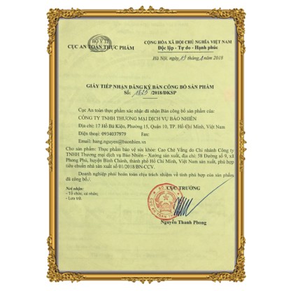 - Cao chè vằng Bảo Nhiên được sản xuất khép kín với công nghệ chiết cao đạt tiêu chuẩn an toàn vệ sinh thực phẩm, thời gian chiết và đóng lọ nhanh nên các thành phần Flavonoid, Ancaloid, Glucozit đắng không bị phân hủy trong nhiệt.