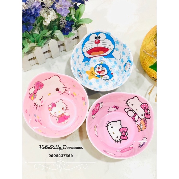 #CHÉN_NHÚ_HELLOKITTY_DOREAMON☘️☘️Mẫu chén 3D nhú để tiện cho t cầm khi sử dụng và khi ăn,chất liệu nhựa melamin dày và đẹp nhé
