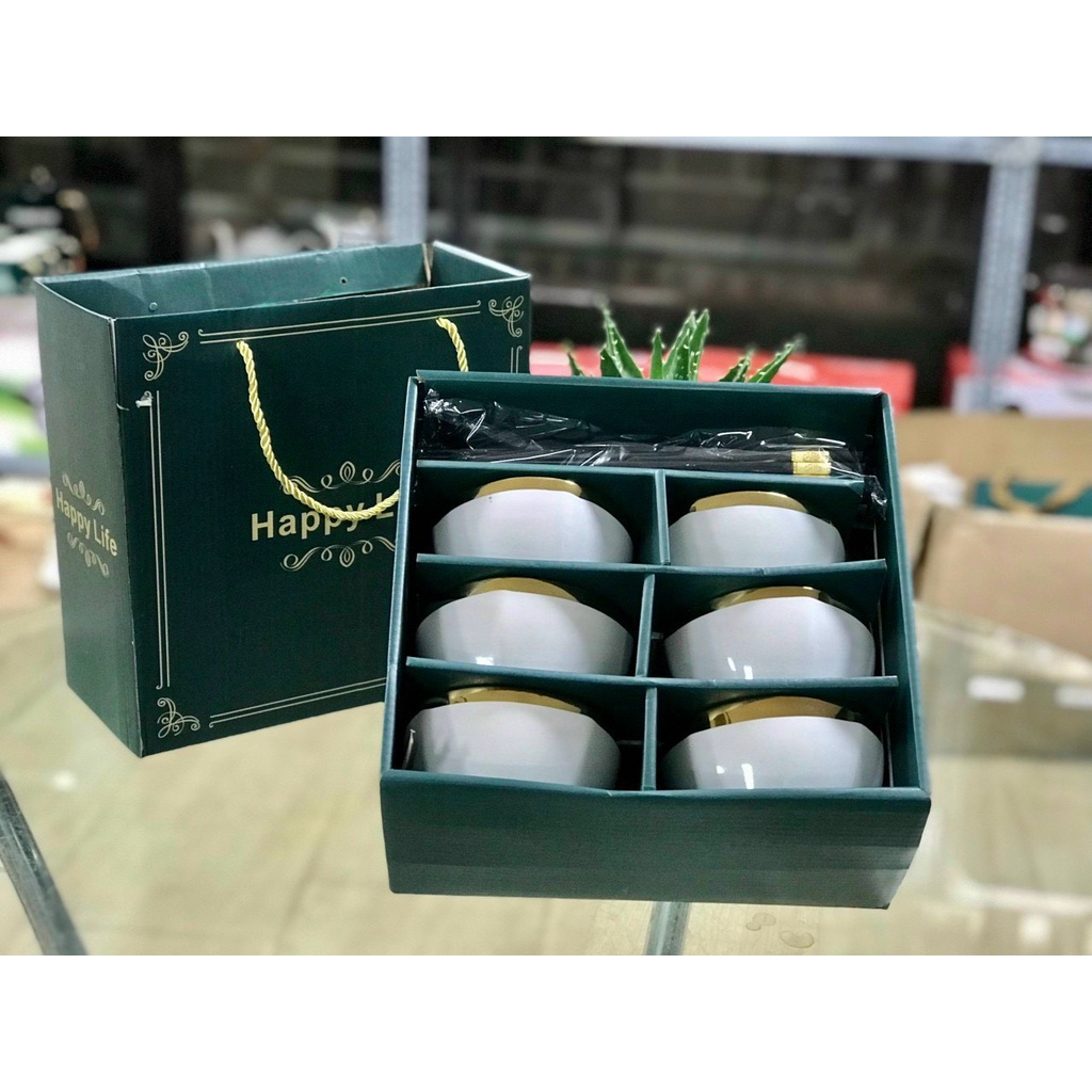 Nhà cửa & Đời sống > Bộ đồ bàn ăn > Tô || Bộ chén 6 món sứ màu trắng viền mạ vàng cao cấp tặng kèm đũa phong cách NhậtCòn hàng