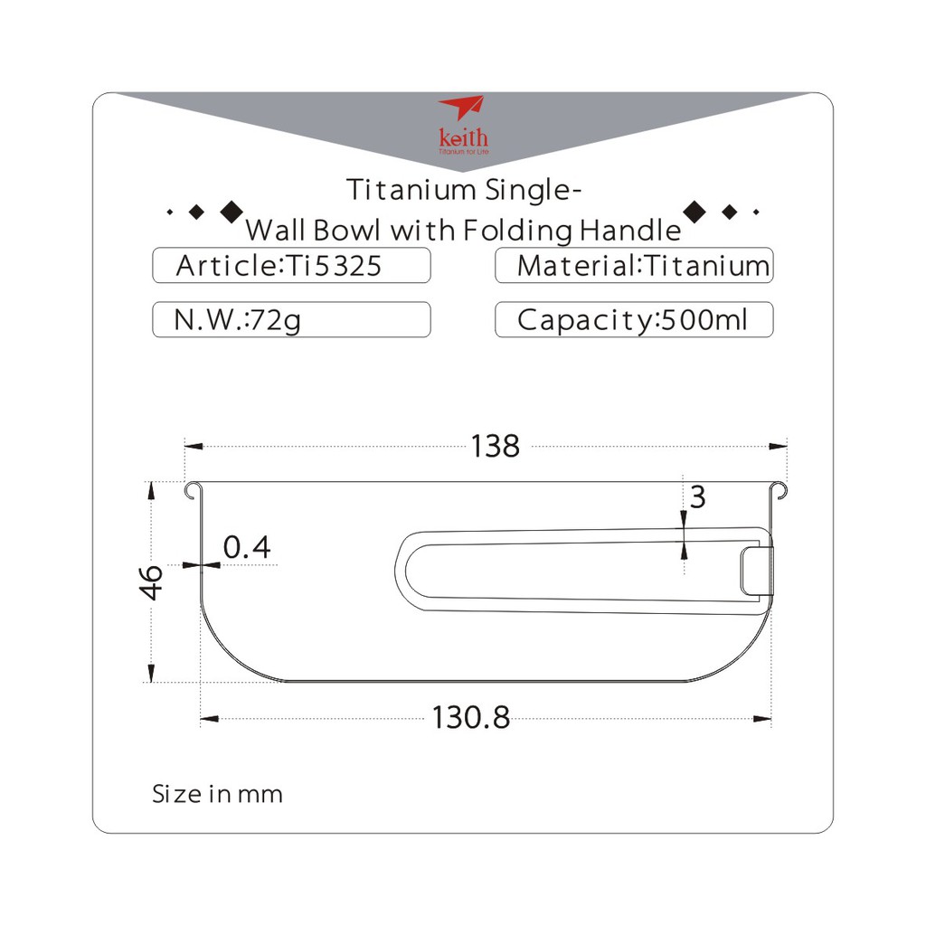 Chén Titanium dành cho một người. Thể tích 500 ml, hoàn hảo để thưởng thức mì gói hoặc soup.