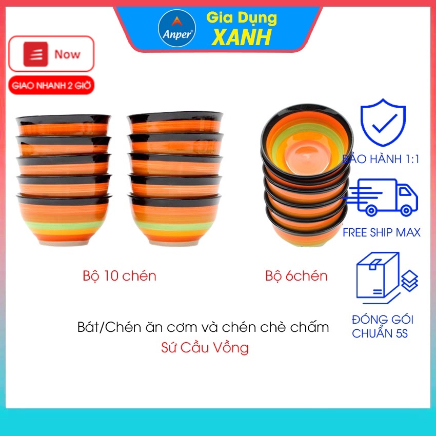 Chén ăn cơm 6 và 10 bát ăn cơm sứ 11 Cm sứ cầu vồng kiểu dáng hiện đại an toàn sang trọng