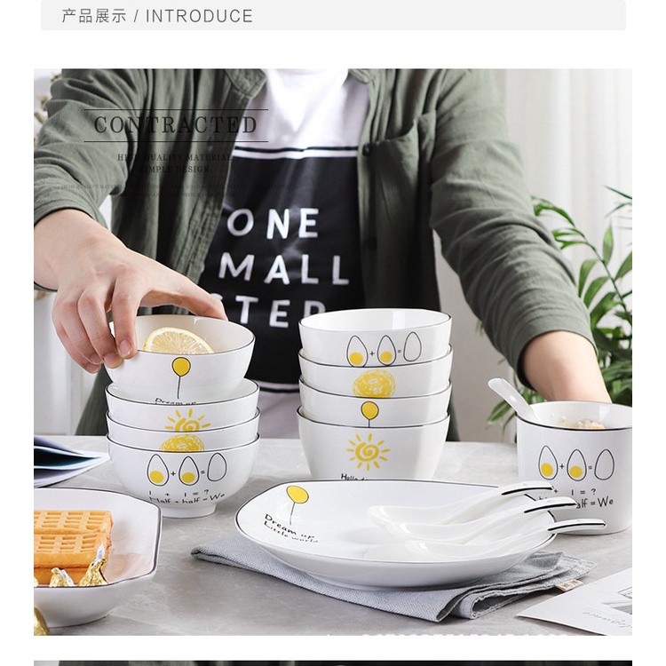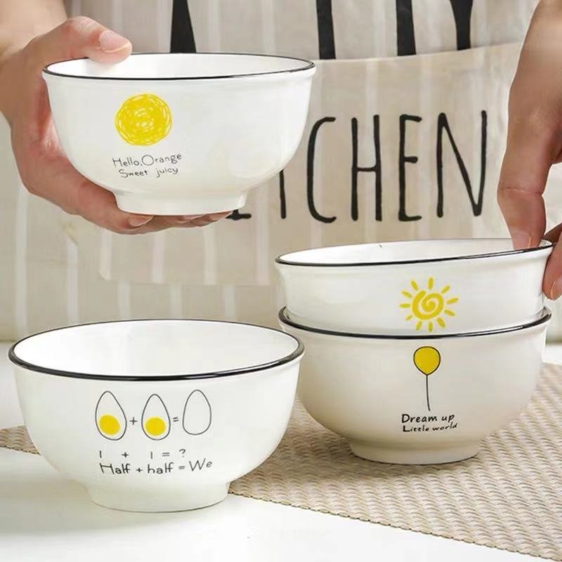 Nhà cửa & Đời sống > Bộ đồ bàn ăn > Tô || Chén ăn cơm, bát ăn cơm sứ trắng dày dặn họa tiết quả trứng xinh xắn cho gia đình 11.5cm x 7cmCòn hàng