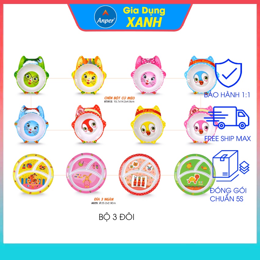Nhà cửa & Đời sống > Bộ đồ bàn ăn > Dĩa || Chén ăn dặm lúa mạch 2 3 4 ngăn cho bé nhiều size Anper an toàn sang trọng dùng cho trẻ emCòn hàng