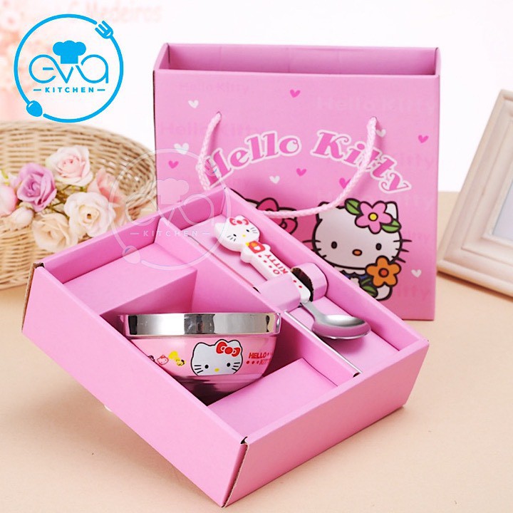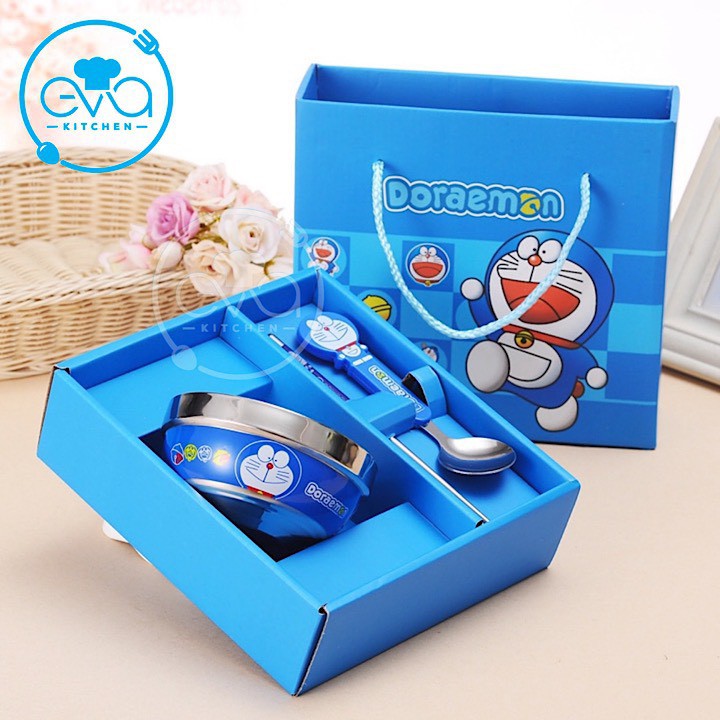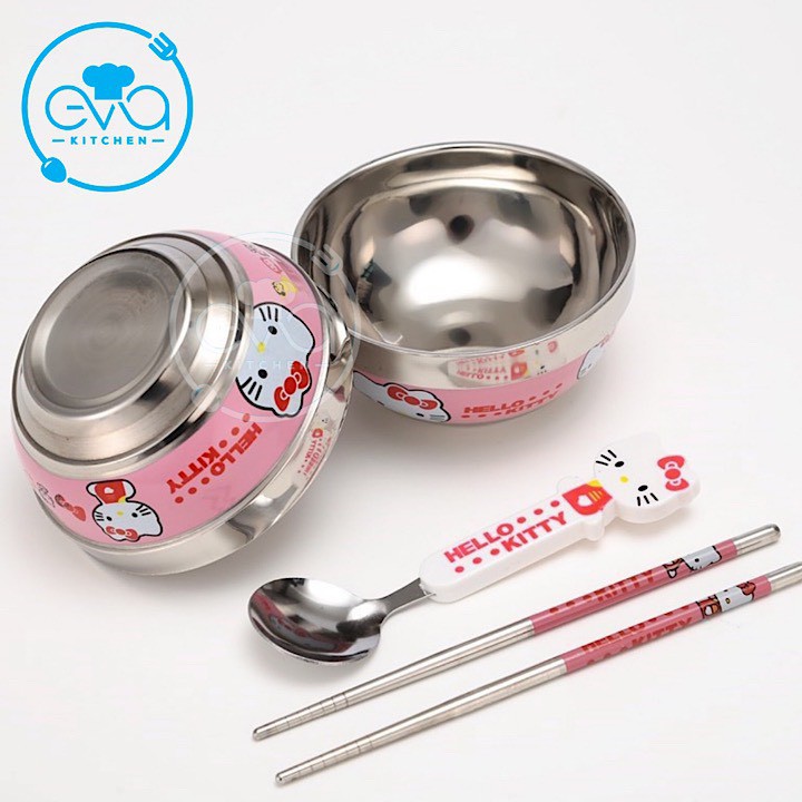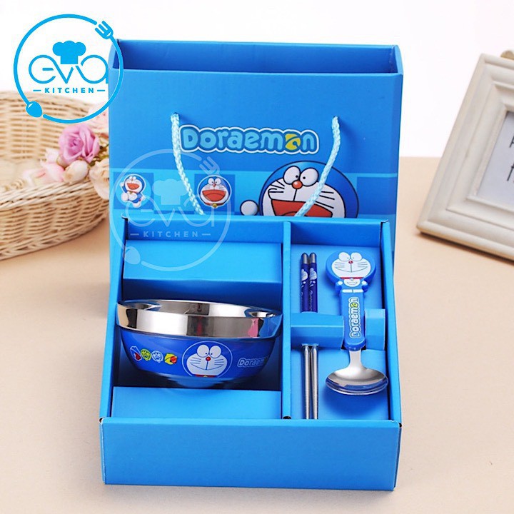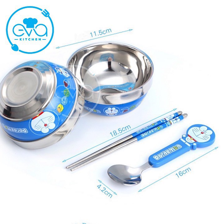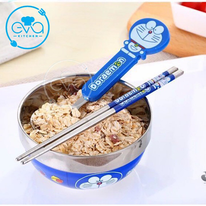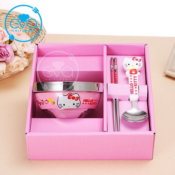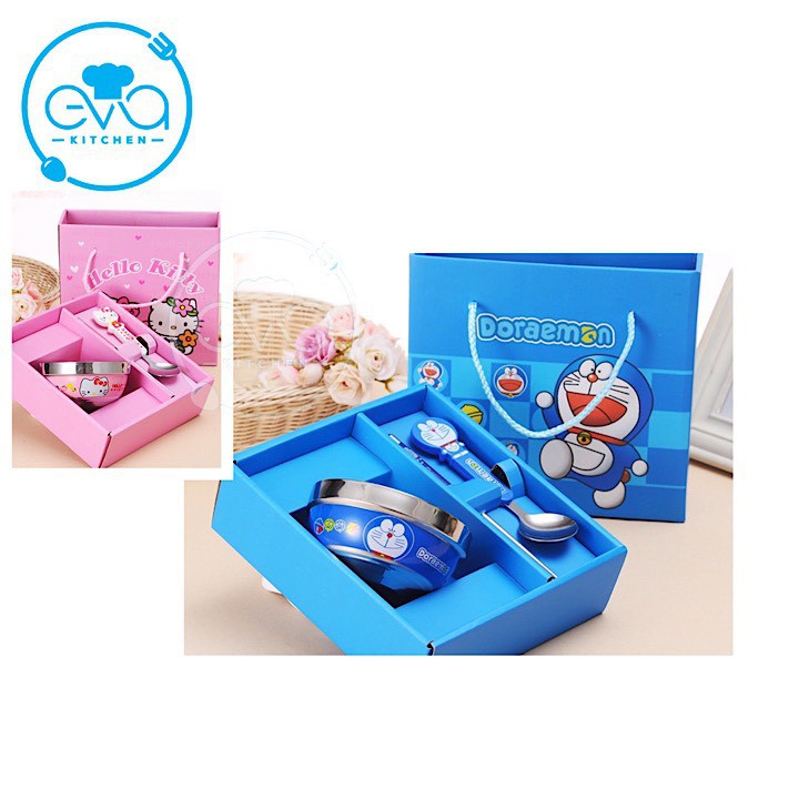 - Công Dụng : Bộ bát, đũa, thìa hình Hello Kitty và Doremon ngộ nghĩnh, dễ thương.Giúp bé thích thú với bữa ăn, ăn ngon và ăn nhiều hơn.
