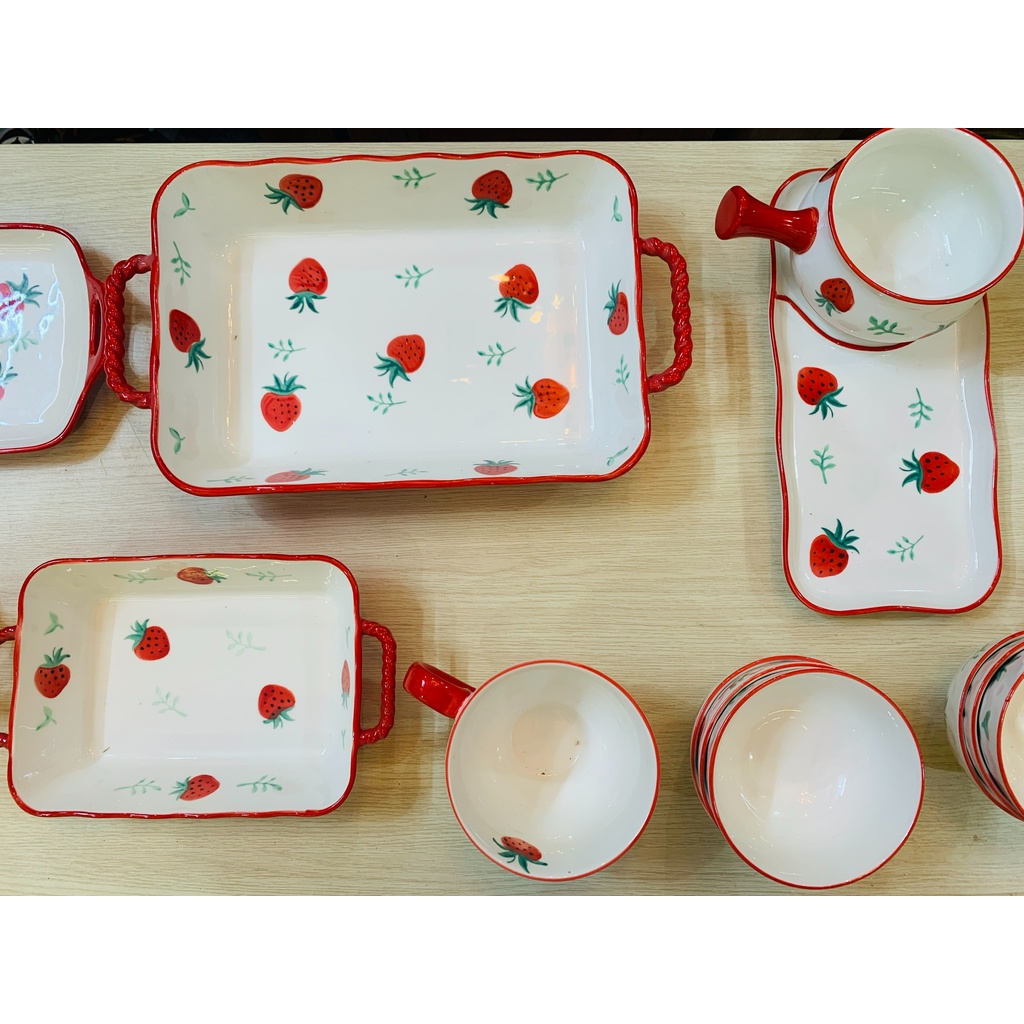 Nhà cửa & Đời sống > Bộ đồ bàn ăn > Tô || Bộ chén, bát, đĩa dâu tây 7 món - Họa tiết dâu tây đỏ Vintage - Xinh xắn, cuteCòn hàng