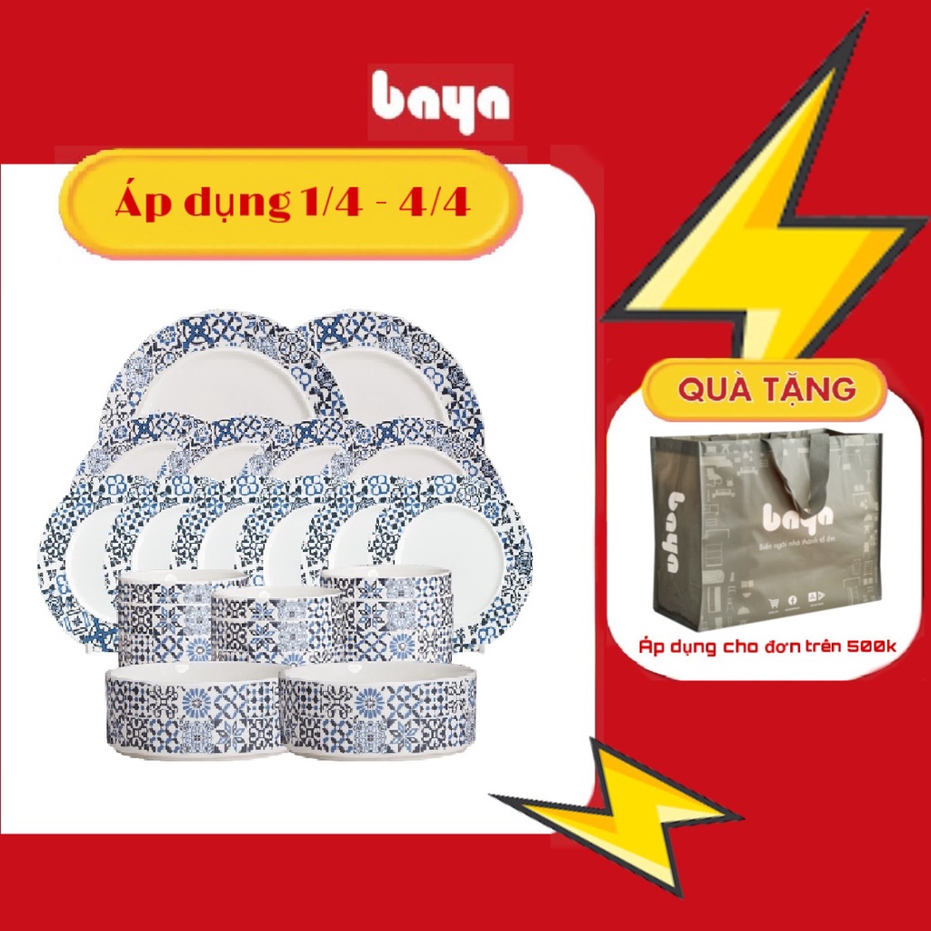 Nhà cửa & Đời sống > Bộ đồ bàn ăn > Dĩa || Bộ Chén Bát Đĩa Sứ Gia Đình Tráng Men BAYA ALBERTA 20 Món Họa Tiết Gạch Bông Xinh Xắn 6000246Còn hàng