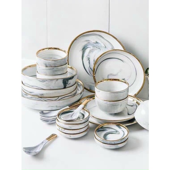 + Bộ bát đĩa được thiết kế sang trọng, hiện đại cùng màu sắc trang nhã, viền mạ vàng nổi bật chắc chắn sẽ tạo thêm sự trang trọng, lịch thiệp cho bàn ăn