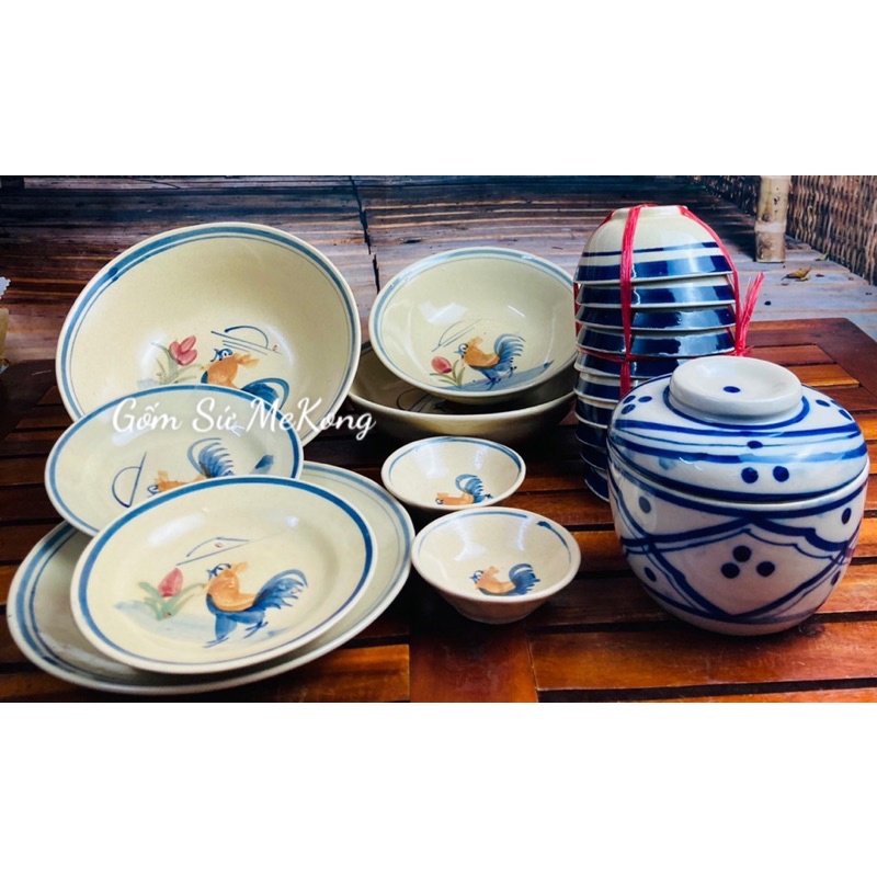 Cửa hàng Gốm sứ Mekong chuyên cung cấp sản phẩm chén xưa, chén dĩa xưa và đồ gốm sứ làm tay thủ công phong cách Nam Bộ.Bộ sản phẩm bao gồm