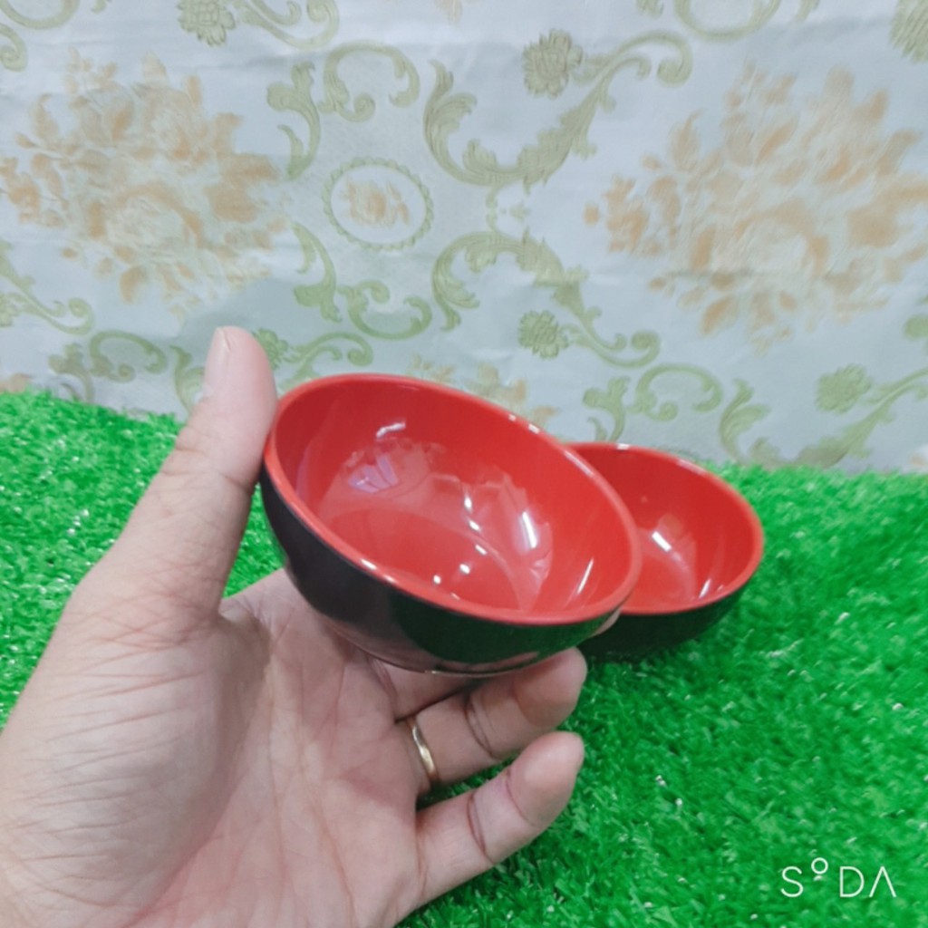 -Chén chấm hai lớp màu đỏ đen,kiểu tròn màu đỏ đen bóng cao cấp CO34 mẫu chén chấm tiện dụng và có độ bền cao làm từ nhựa melamine cao cấp-Chén chấm 2 lớp màu sắc đẹp sáng bóng,thường được sử dụng trong quán ăn ,nhà hàng, BBQ....