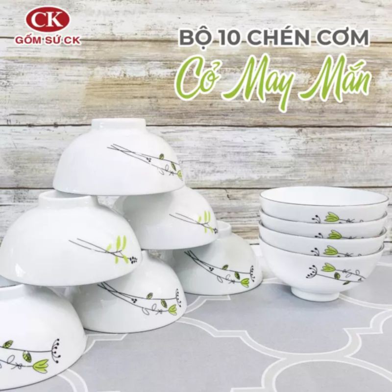 CHÉN CƠM SỨ BỘ 10 CÁI CK LOẠI 1( hết mẫu bông cọ)