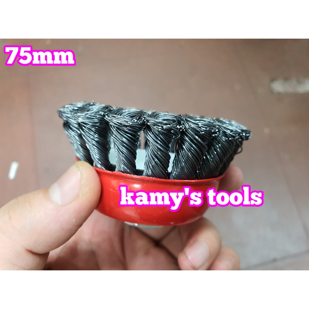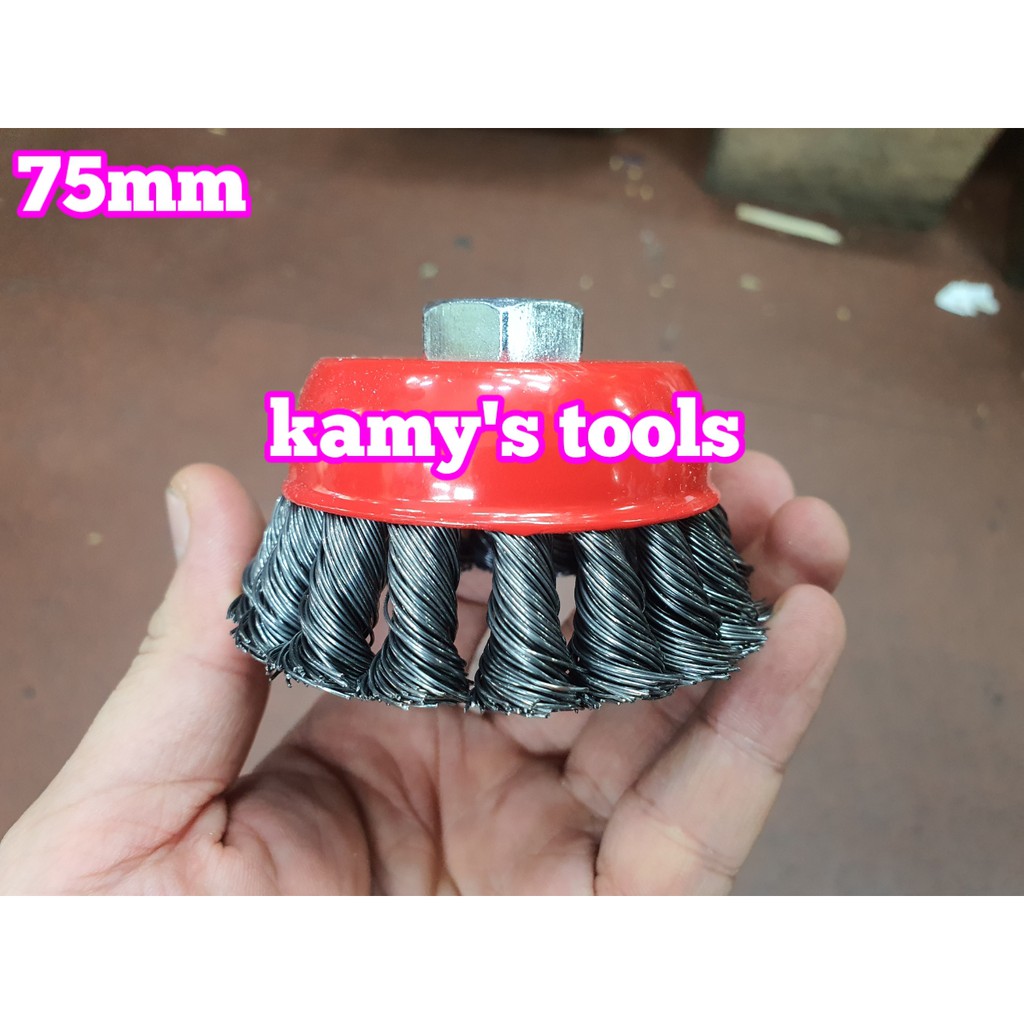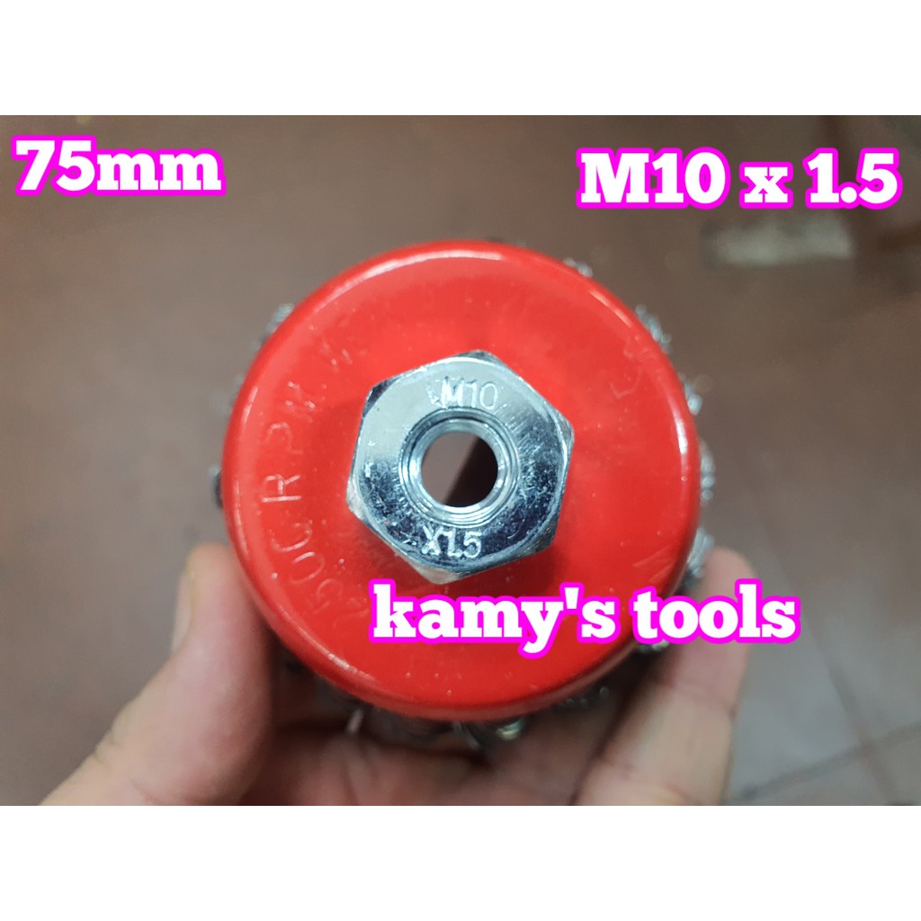 Chén cước hay chổi cước thép xoắn 75mm tán M10x1.5 và M14x2.0Chất liệu: Thép