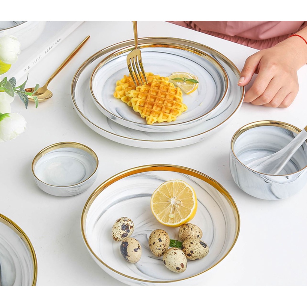 + Bộ bát đĩa được thiết kế sang trọng, hiện đại cùng màu sắc trang nhã, viền mạ vàng nổi bật chắc chắn sẽ tạo thêm sự trang trọng, lịch thiệp cho bàn ăn
