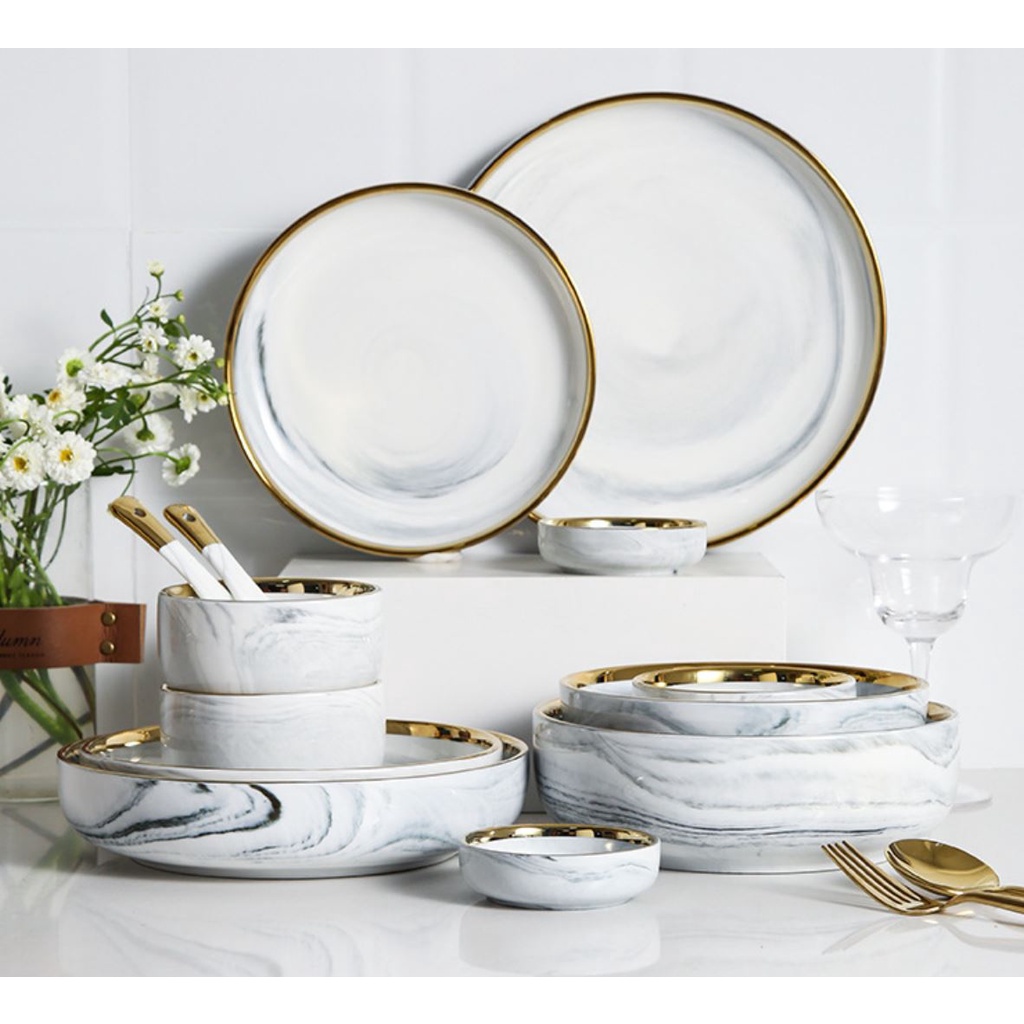 - Sản phẩm: Bộ bát đĩa, bộ bát đĩa sứ 26 món viền vàng cao cấp cho 6 người -