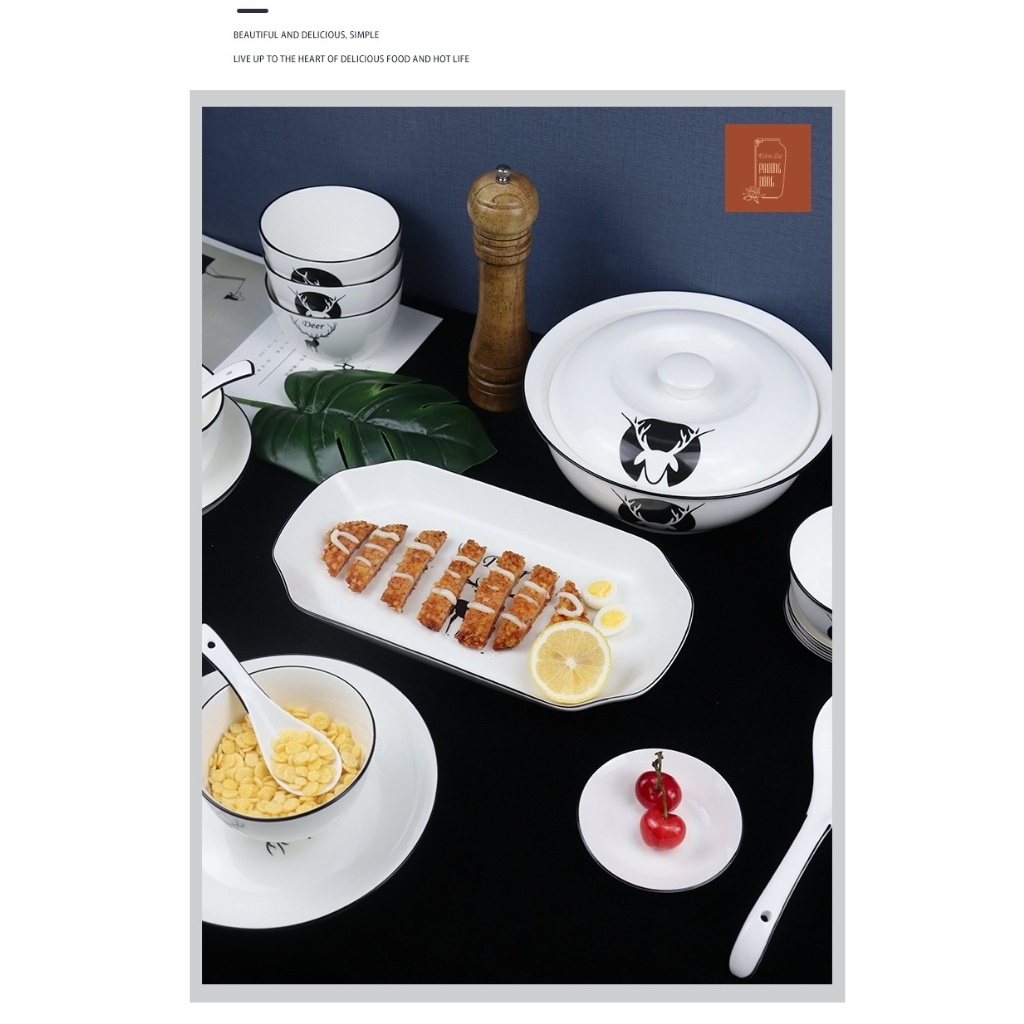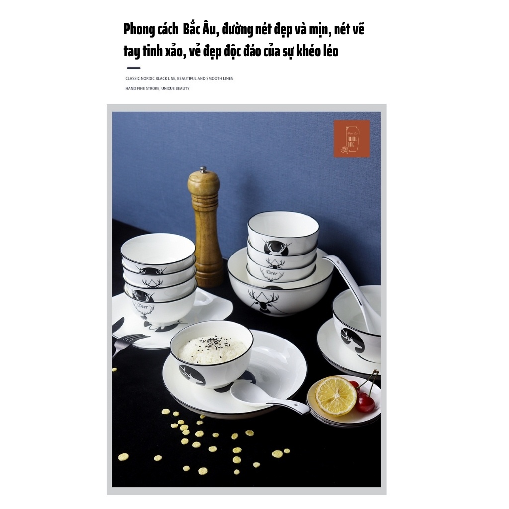 🌿BỘ SẢN PHẨM BÁT ĐĨA HƯƠU mang phong cách Bắc Âu sang trọng nhẹ nhàng, được phối màu trắng đen đơn giản nhưng rất tinh tế, họa tiết vẽ tay thủ công tinh xảo sắc nét, men đẹp sáng mịn.
