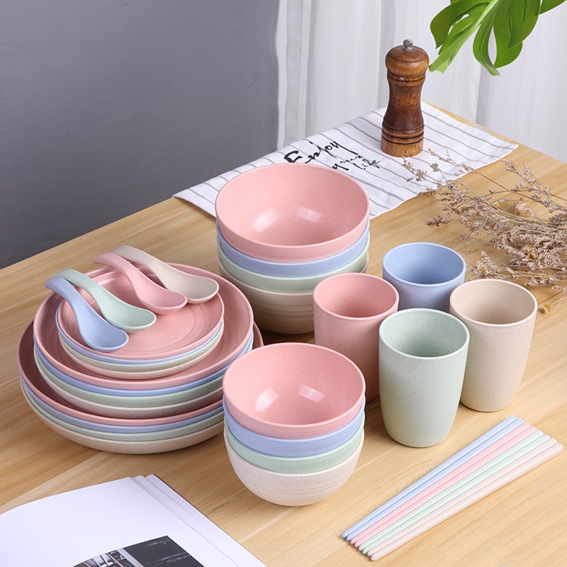 Giới thiệu Bộ Chén Đĩa Bát (Tô) Đựng Thức Ăn Chất Liệu Lúa Mạch Màu Sắc Tươi Mới - Bộ Dụng Cụ Ăn Dặm An Toàn - Gia dụng Homewares