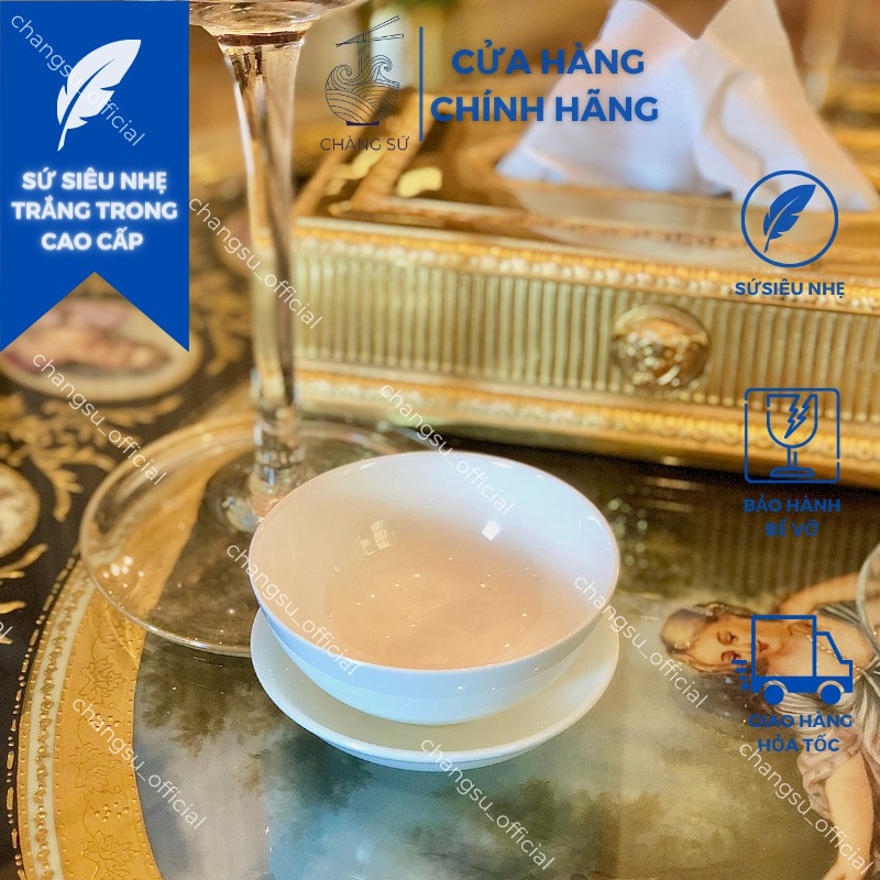 Chén đĩa chấm gia vị trắng trơn sứ siêu nhẹ - Sứ siêu nhẹ Minh Châu - Vỡ 1 đổi 1