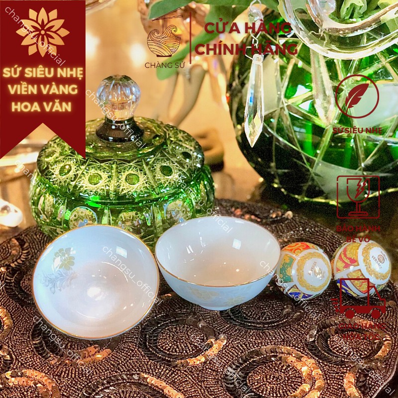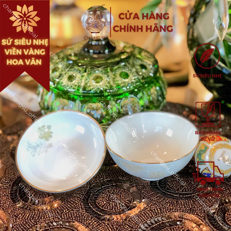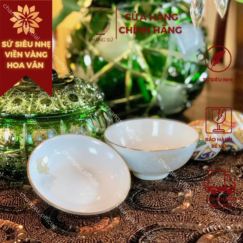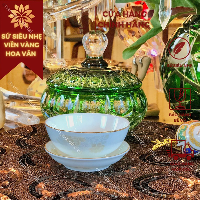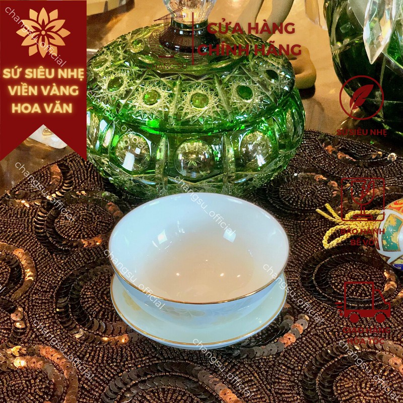 Nhà cửa & Đời sống > Bộ đồ bàn ăn > Dĩa || Chén đĩa chấm gia vị viền vàng 12k hoa văn sứ siêu nhẹ - Sứ xương siêu nhẹ Minh ChâuCòn hàng