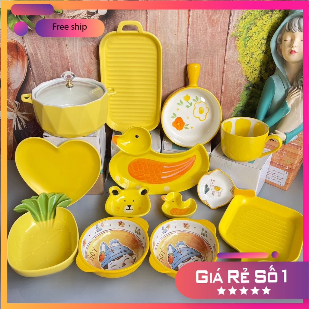 Chén Dĩa Dễ Thương Đĩa Sứ Set Bát Đĩa Decor Bát Ăn Cơm Chén Sứ Màu Vàng Siêu Dễ Thương S118