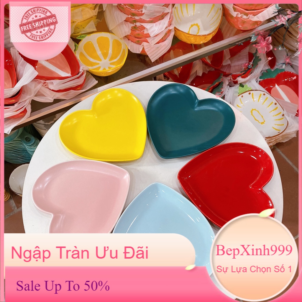 Chén Dĩa Dễ Thương Đĩa Sứ Set Bát Đĩa Decor Đĩa Hình Tim Nhiều màu B17
