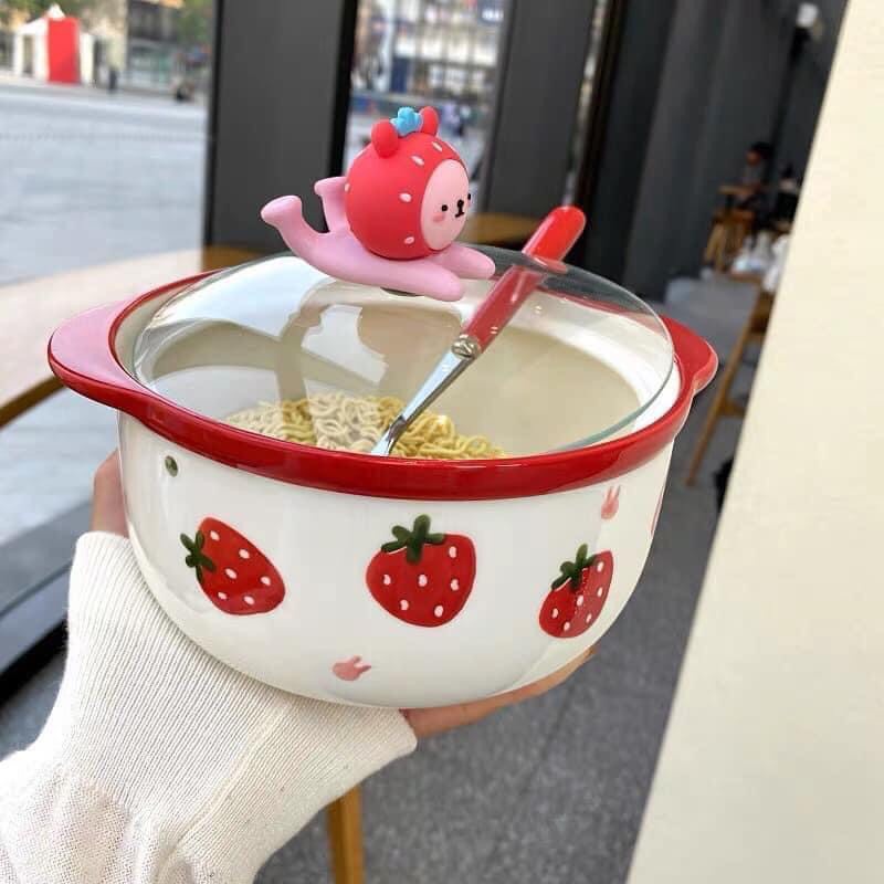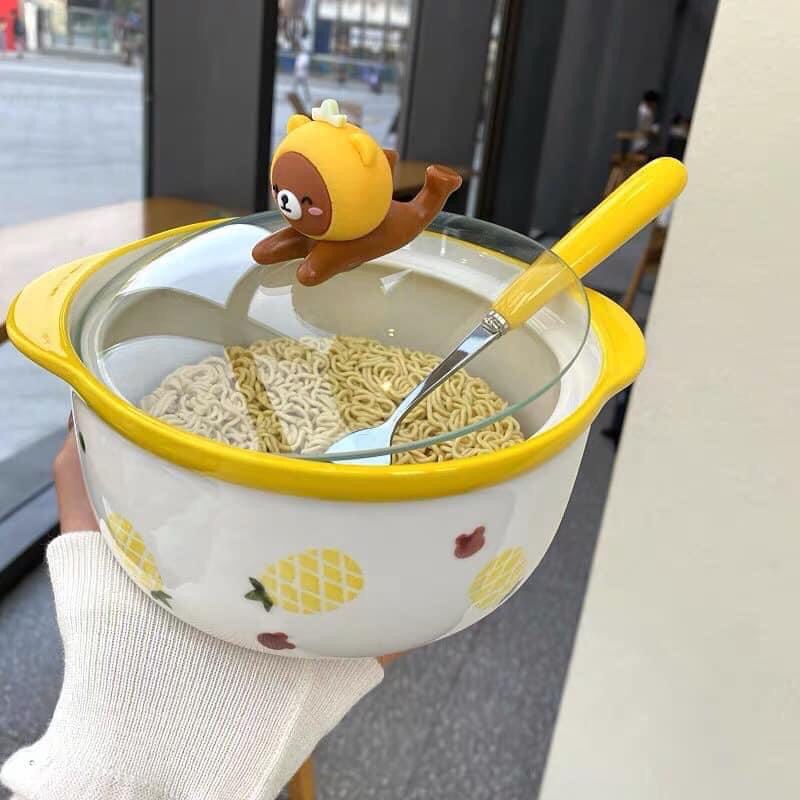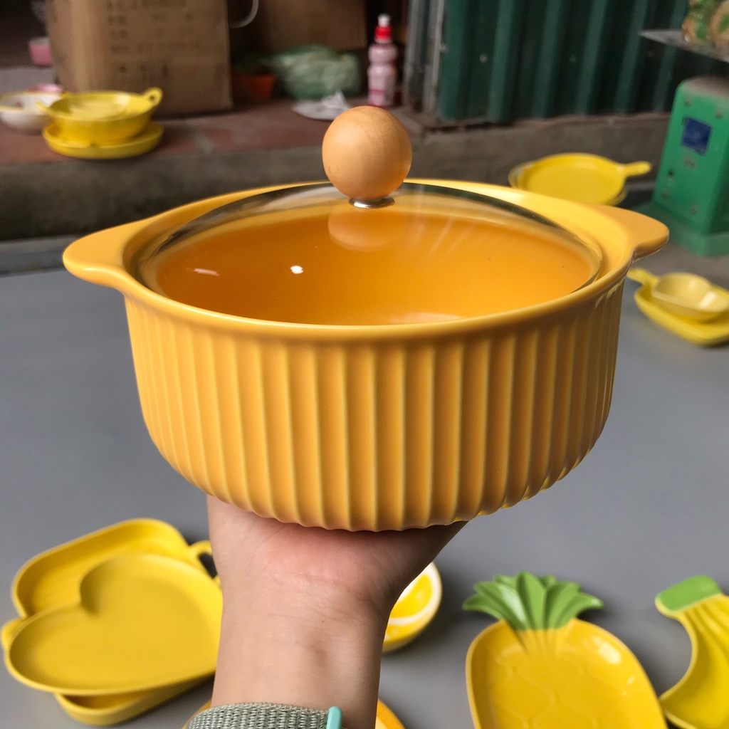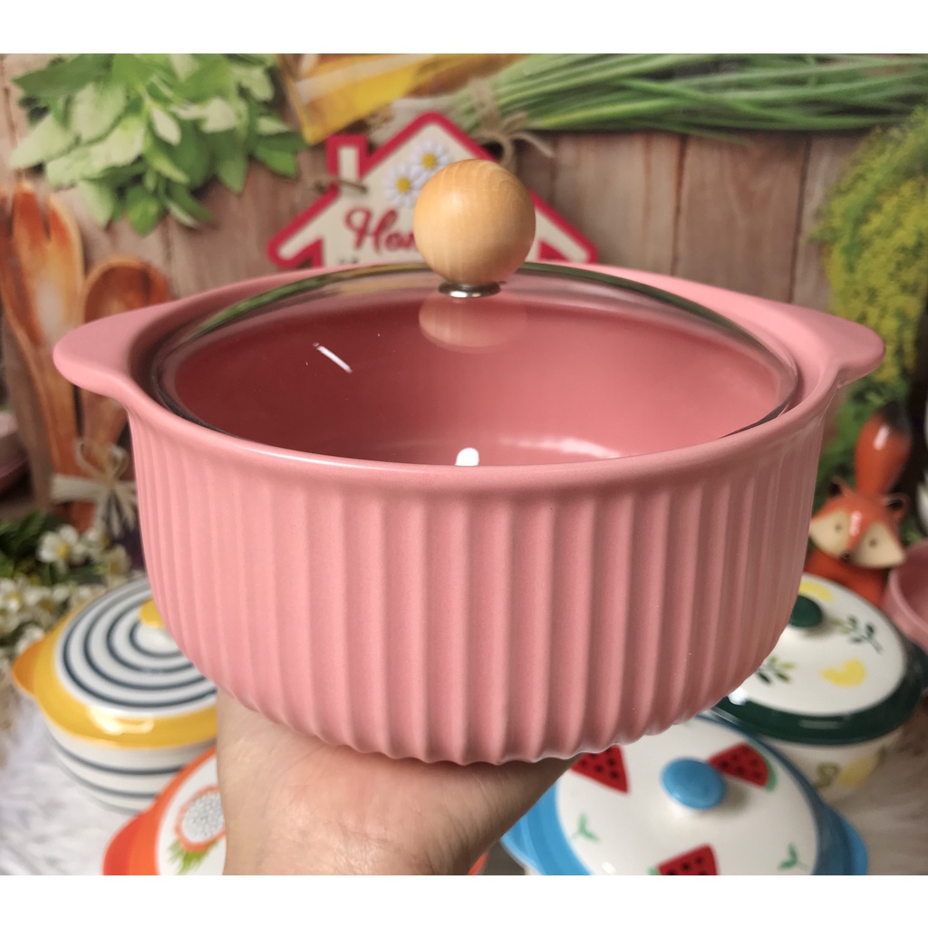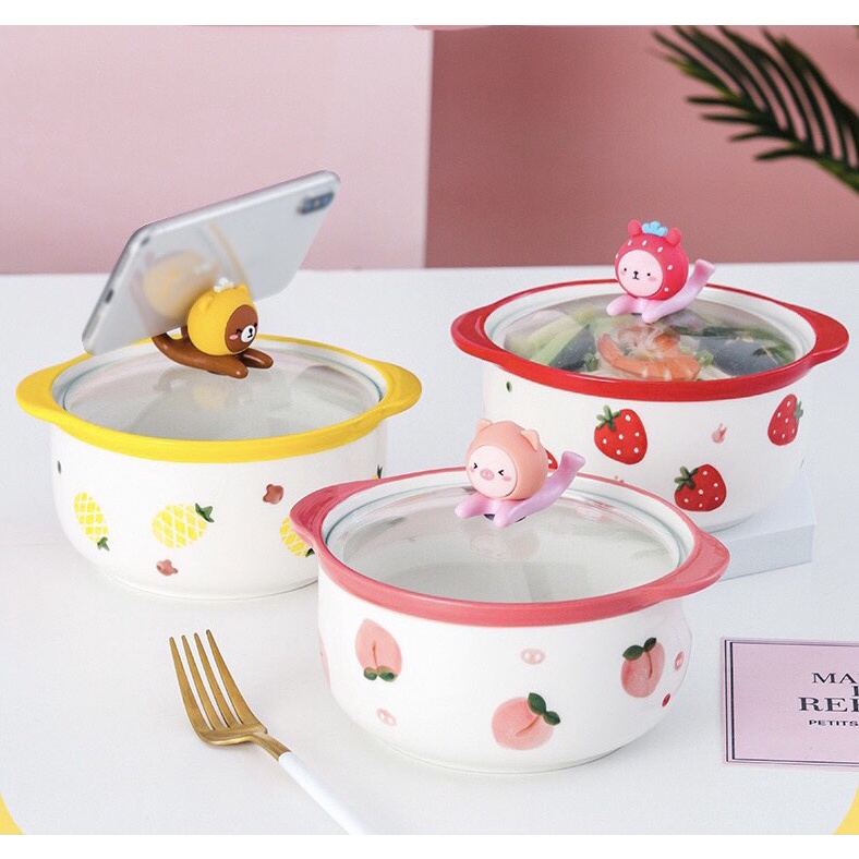 Chén Dĩa Dễ Thương Đĩa Sứ Set Bát Đĩa Decor Bát Ăn Cơm Nồi Nắp Kính S41