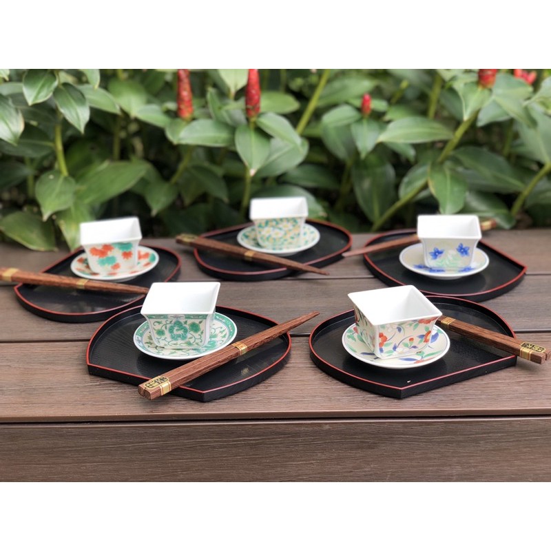 Bộ chén đĩa đũa và khay lót gốm sứ Nhật dòng gốm ngũ sắc
