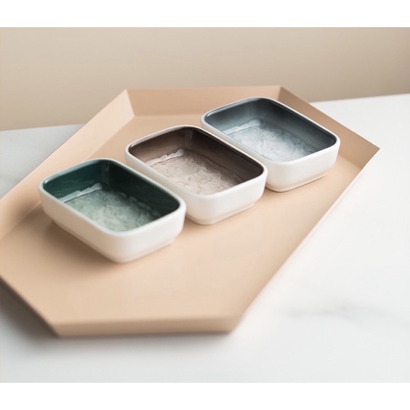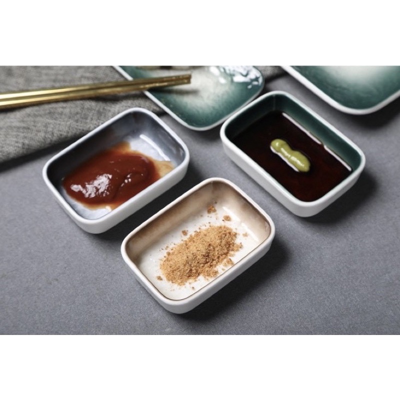 Nhà cửa & Đời sống > Bộ đồ bàn ăn > Dĩa || Chén đĩa đựng gia vị , sốt , nước chấm Vân đá thạch, chén chấm chữ nhậtCòn hàng