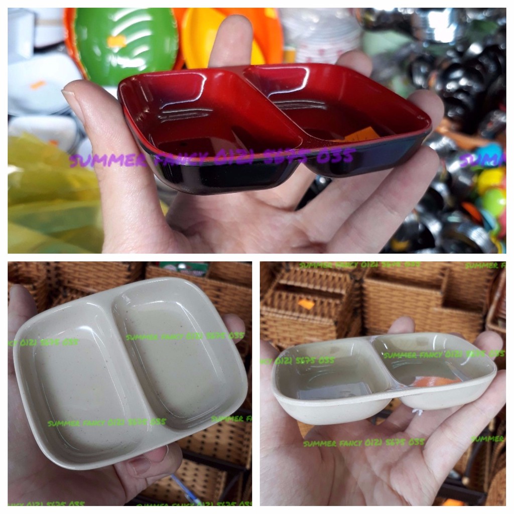 Chén đĩa gia vị 2 ngăn 9 x 7.3cm / Dĩa tương 2 phần đen, nâu kem - small bowl F-C101