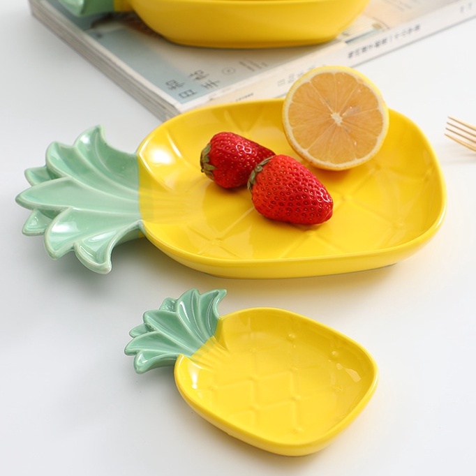 Chén Đĩa Gốm Sứ Hình Quả Dứa Nhiều Size Decor Cho Nhà Xinh, Chén Đĩa Ăn Dặm Cho Bé Chất Liệu Cao Cấp