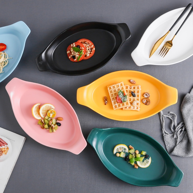 - Chén dĩa - Khay nướng để lò vi sóng - Đĩa sứ decor nhiều màu Cao Cấp